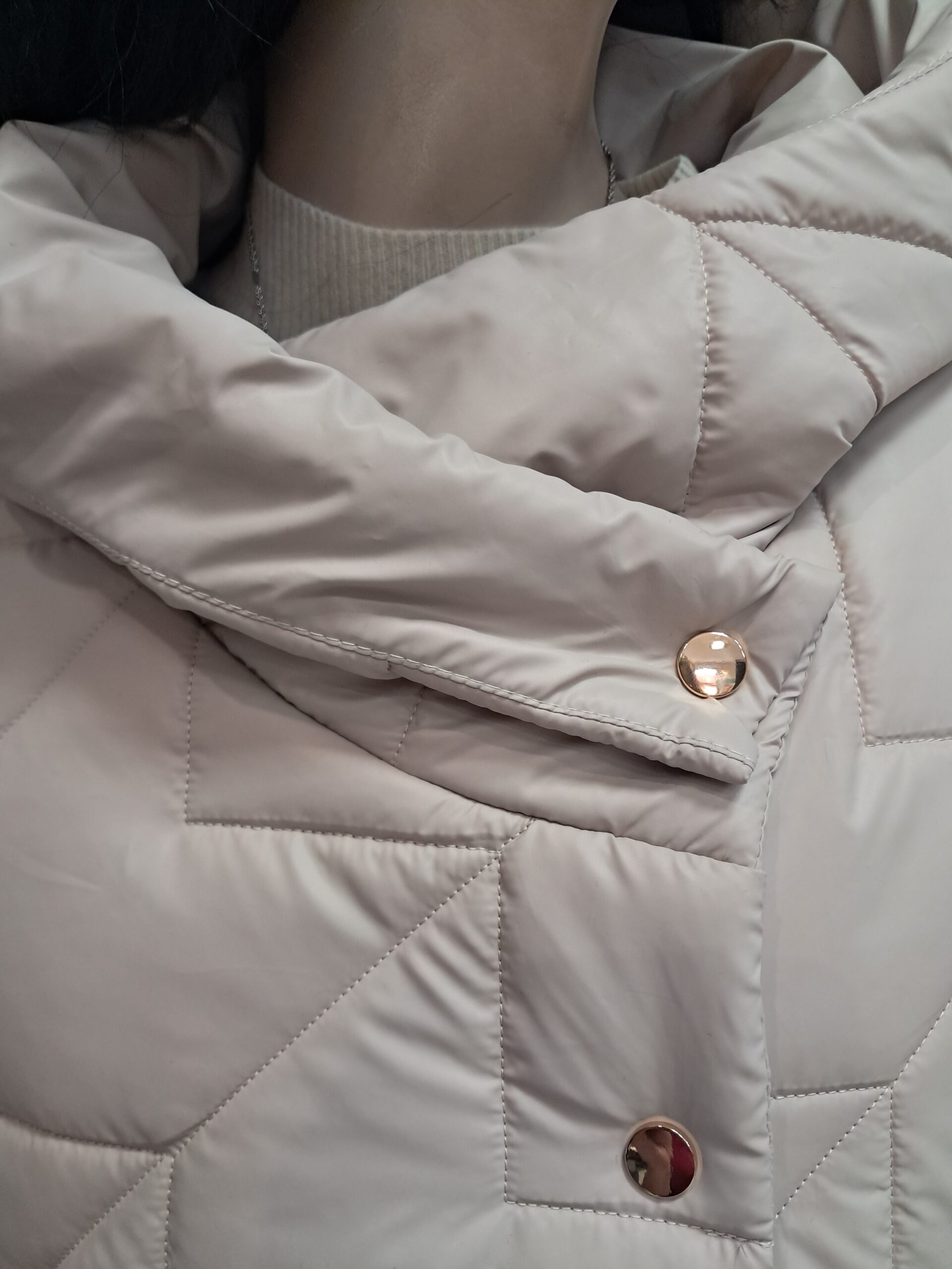 Lekka, stylowa kurtka marki DE Fitto w uniwersalnym beżowym kolorze, doskonała na sezon przejściowy- zimowy. Model o prostym, lekko taliowanym kroju, który subtelnie podkreśla sylwetkę, zapewniając jednocześnie swobodę ruchów.