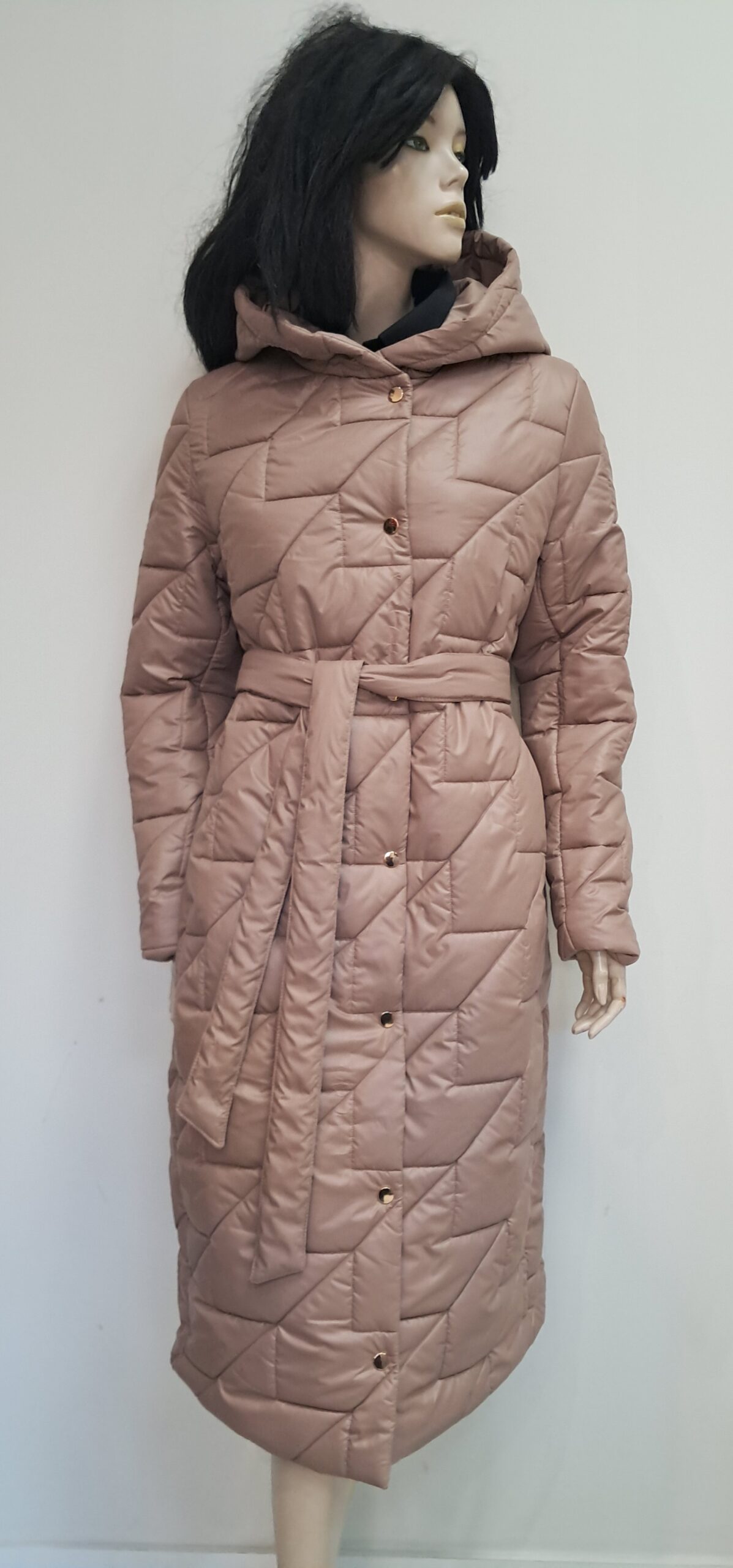 Beżowy płaszcz DE Fitto – długi, pikowany i stylowy