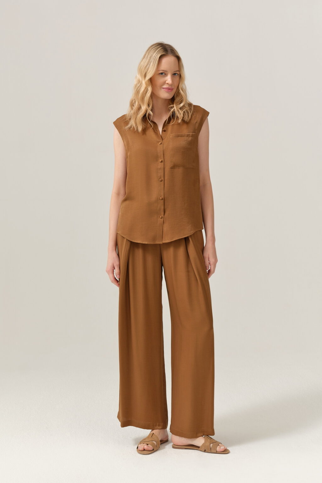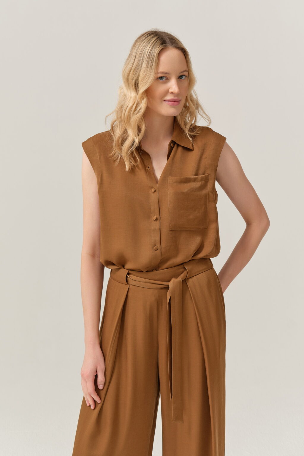 Elegancka bluzka FÉRIA bez rękawów w ciepłym odcieniu brązu