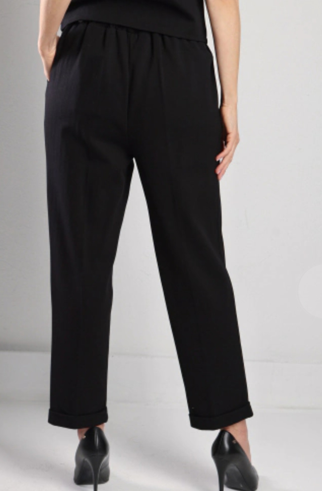 Stylowe i wygodne spodnie wykonane z tkaniny o subtelnym, tłoczonym wzorze jodełki. Model posiada elastyczną gumę z tyłu w pasie, która zapewnia idealne dopasowanie, oraz funkcjonalne szlufki umożliwiające noszenie paska.