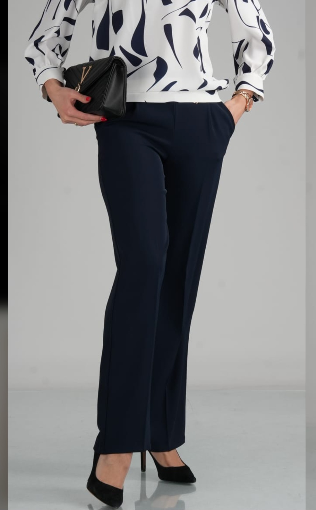 Eleganckie spodnie damskie Barton w kolorze ciemnego granatu to idealne połączenie stylu i wygody. Wykonane z lekkiego, lejącego materiału, pięknie układają się na sylwetce i zapewniają komfort noszenia przez cały dzień. Klasyczny kant nadaje im elegancki charakter, dzięki czemu świetnie sprawdzą się zarówno w stylizacjach biznesowych, jak i bardziej casualowych.