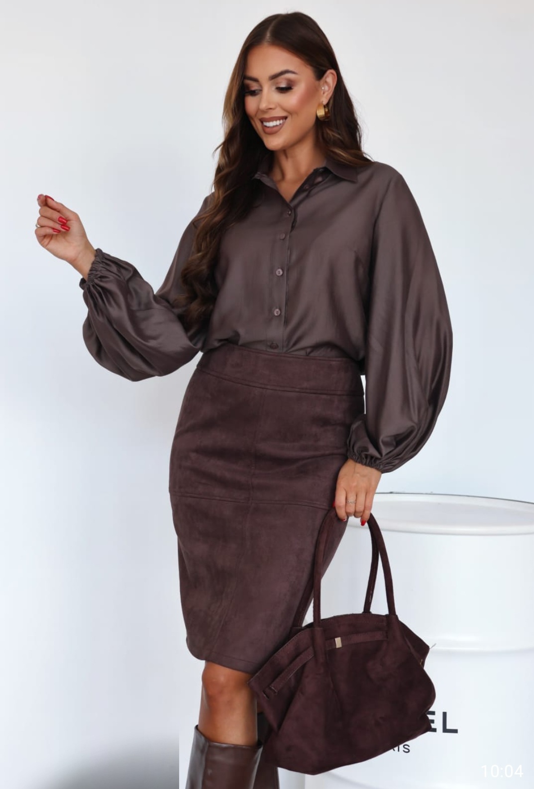 Spódnica czekoladowa z miękkiego materiału – klasyczny fason