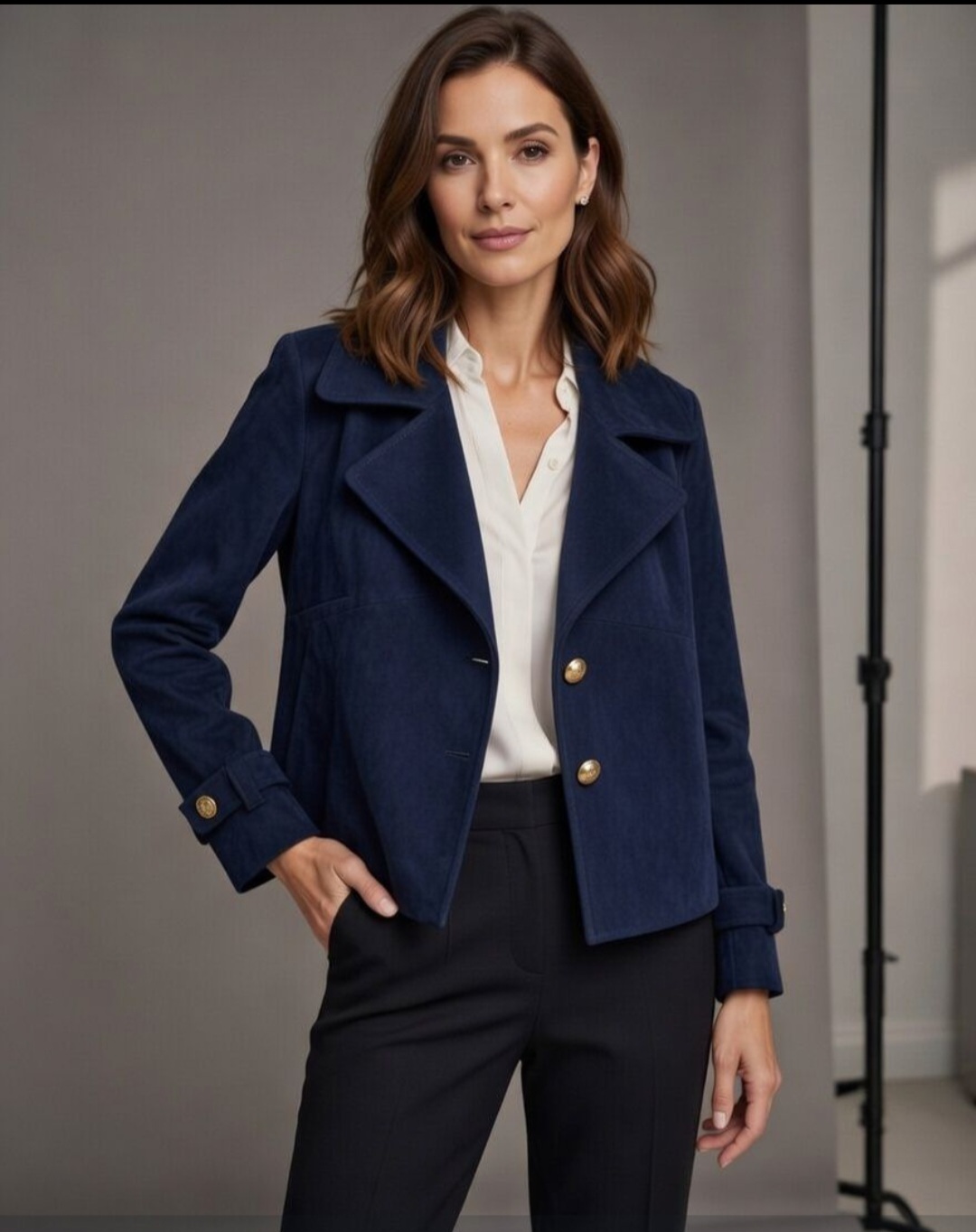 Granatowa kurtka zamszowa to stylowa propozycja idealna do codziennych stylizacji. Model posiada klasyczny kołnierz oraz wygodne zapięcie . Elegancki, a jednocześnie uniwersalny fason sprawia, że kurtka doskonale komponuje się zarówno z sukienkami, jak i spodniami. Wykonana z niezwykle miękkiego i przyjemnego w dotyku materiału, który zapewnia komfort noszenia przez cały dzień.