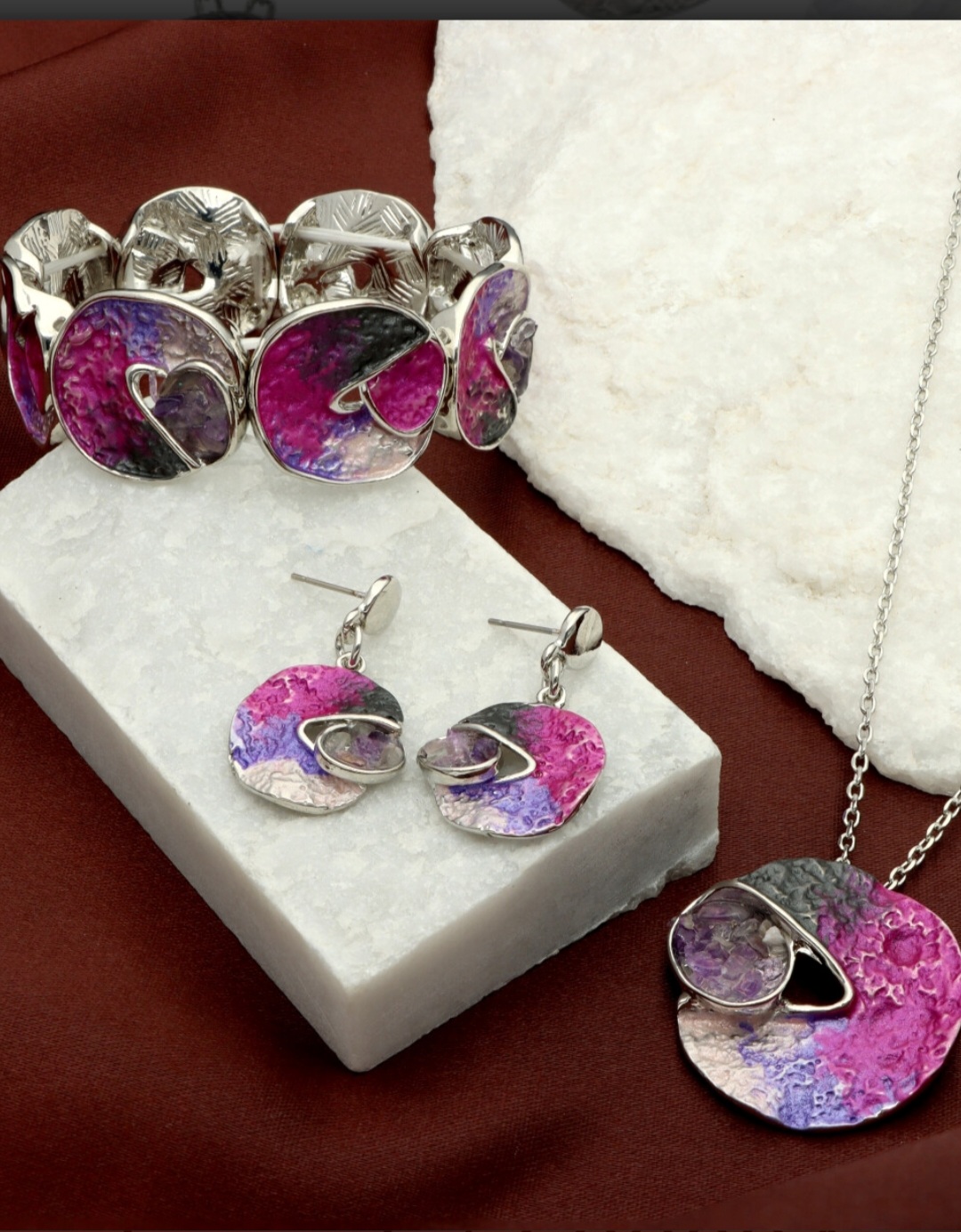 Każdy element zestawu jest unikatem, który łączy artystyczną precyzję z delikatnym, kobiecym stylem. To idealny wybór dla osób, które chcą podkreślić swoją indywidualność i wprowadzić do stylizacji elegancki, kolorowy akcent.