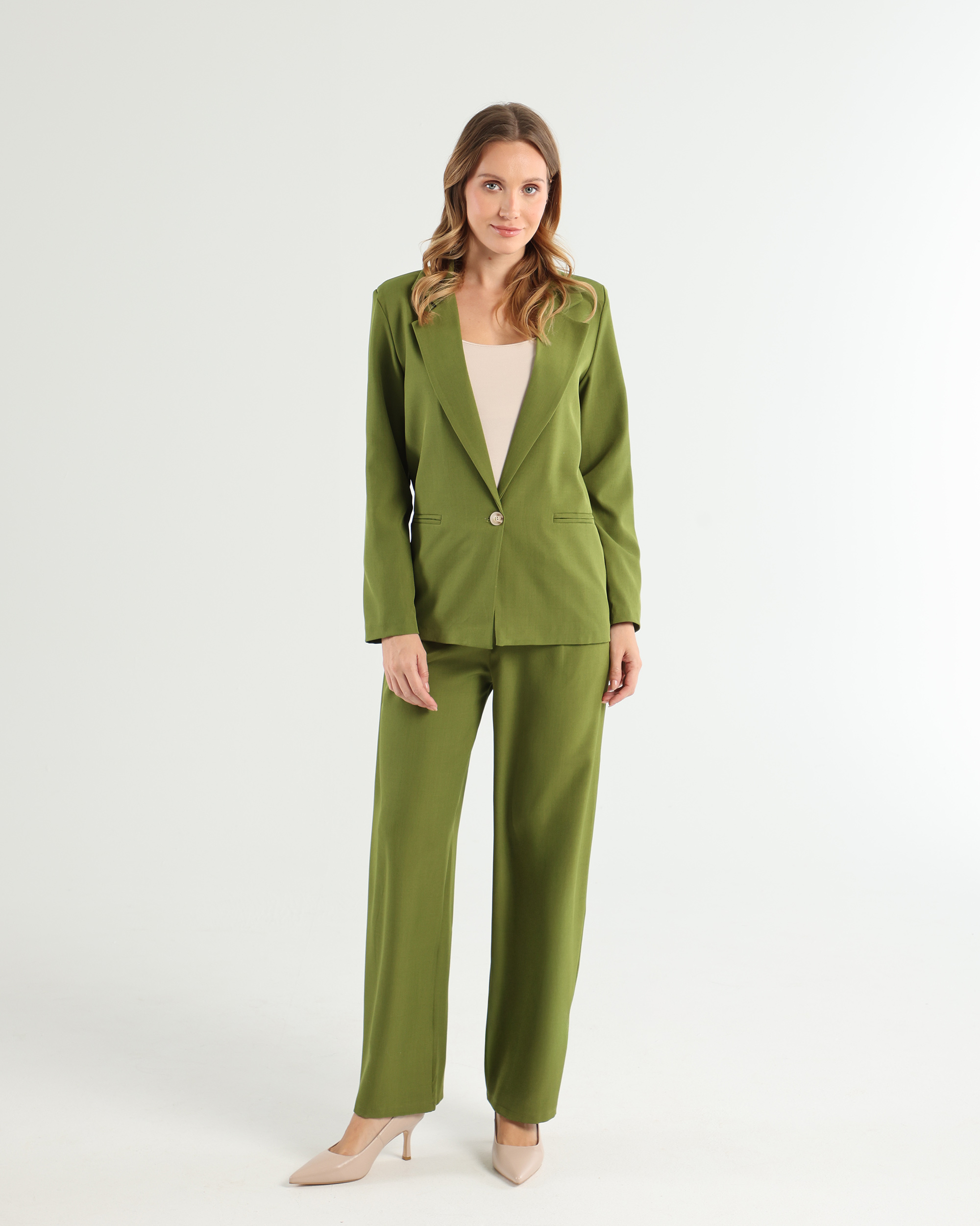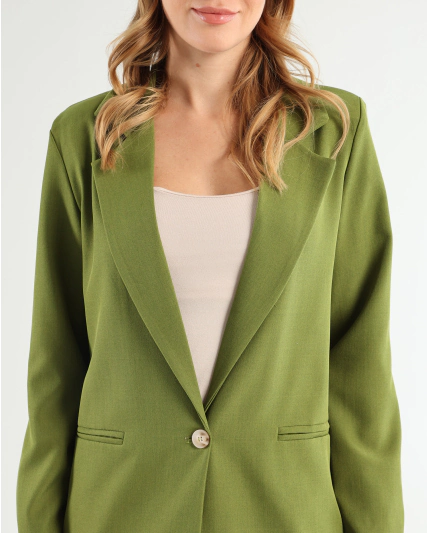 Zielony żakiet o prostej linii to elegancka propozycja o wydłużonym kroju i wyraźnie zaznaczonej linii ramion, która nadaje sylwetce uporządkowany i schludny wygląd. Jednolity kolor oraz gładkie wykończenie podkreślają jego klasyczny charakter, dzięki czemu doskonale sprawdzi się zarówno w stylizacjach formalnych, jak i bardziej codziennych.